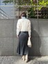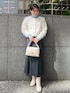 モテる◎冬ニットコーデ 【カーディガン】 冬に一枚は手元に欲しい毛足の長いシャギーカーディガン。 白のシャギーカーディガンは女子っぽさを+してくれるので男女問わずモテコーデになること間違いないです♡ ボタンを留めると丸首なので首元がスッキリ見えますよ! 着膨れして見えない絶妙なサイズ感がポイント。 【ニット】 LAGUNAMOONのベーシックリブニットシリーズはもっちりとした肌に吸い付く着心地の良さが魅力✨ 今年の新色のライトブルーはパッと明るいカラーなのでコーデの差し色になりますよ 【スカート】 ウエスト部分のカットデザインがポイントのマーメイドスカート。 締め色になるベルトとセットなので、キュッとウエストマークが出来てスタイルアップ効果抜群でした♡ ややゆとりのあるサイズ感なので、ヒップ・太ももあたりもピタッとしすぎない楽な着心地もおすすめポイント。 フロント部分にはさりげなくスリットも入っているのでロング丈でも足捌き良く歩きやすかったです◎ 163センチでMサイズ着用し足首が見える丈感なので長すぎずにスッキリと着こなせますよ♡ 【バッグ】 ゴールドがポイントになるシンプルデザイン✨ しっかりマチがあるのでハンカチ、長財布、ポーチも入るくらいしっかりサイズ感です! ショルダー付きなので手元が塞がるのが苦手な方にもおすすめ♡