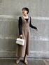 女性らしさあるワンピースコーデ 【トップス】 スクエアネックなのでデコルテラインが綺麗に見えるトップス♡ 袖がすこしふわっとしますが、ボリュームが出過ぎないので肩周りががっちり見えず華奢見えしますよ〜♡ 背中が開くので背筋がスッと伸びて女性らしくいよう!と気合が入ります。笑 見ごろシンプルなデザインなのでハイウエストのボトムスとのコーデがオススメです! 【ワンピース】 ウエストがフィットするデザインがスッキリ見えるジャンパースカート。 裾が広がるフレアーシルエットなので、女性らしさのある印象に♡ 163センチでMサイズ着用しており、すねにかかるくらいの短め設定なので小柄さんにもオススメの丈感です✨ 【ピアス】 小ぶりなサイズ感が可愛いです♡ 【バッグ】 質感・サイズ感共にこんなの欲しかった!と思ったツイードバッグ♡ 小ぶりなのにしっかりマチがあるのでお出かけの必需品全て収まります◎ ゴールドの金具が高級感あり持っているだけで気分が上がります。 【ブーツ】 ふかふかの履き心地に感動♡ 普段24.0〜24.5サイズでMサイズを選んでいます!靴下を履いていても若干余裕があるので窮屈感なく足が痛くならず嬉しい♡