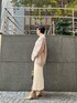 リラックスしたい日のコーデ♩ 【トップス】 ゆったりシルエット×シャギーの柔らかい素材感がほっこりした印象♡ 友人との年末の集まりや、帰省などリラックスしたお洋服でおしゃれに挑みたい日にぴったり。 毛足が絡まらない、短めのシャギーニットなのでお手入れも手がかからなさそうな所もオススメポイント。笑 ハイネックですが、首周りにはゆとりがあるので首が短めの私もバランス良く着こなせました♡ ハイネックデザインに苦手意識のある方にも是非挑戦して頂きたいです! 【スカート】 トレンドのラメデザイン♡ キラキラしすぎるかな?と思っていましたがアイボリーのスカートはラメ感控えめで合わせやすいです♩ タイトシルエットでややヒップ・太もものラインを拾いやすいので、骨格ウェーブ体型の私はゆったりしたニットと合わせたコーデがお気に入り。 裏地がしっかりついているので肌に当たった時のチクチク感は全くありませんでした♩ 163センチでMサイズ着用し足首上3〜4センチ程なので150〜155センチの方だとSサイズがオススメです! 【バッグ】 JWPEIからセレクト。 横長のコンパクトなデザインなのでコーデに馴染み合わせやすい♡ 【シューズ】 ふかふかの履き心地に感動したブーツ。 ヒールにも安定感があり、店頭での7.5時間勤務も足が痛くなること無く過ごせています! 足元が柔らかく見えるベージュがおすすめ。 【ピアス】 キャッチ無しで付けられるタイプなのでサッと手に取りやすい! 変わったリングの形もお洒落で気に入っています。