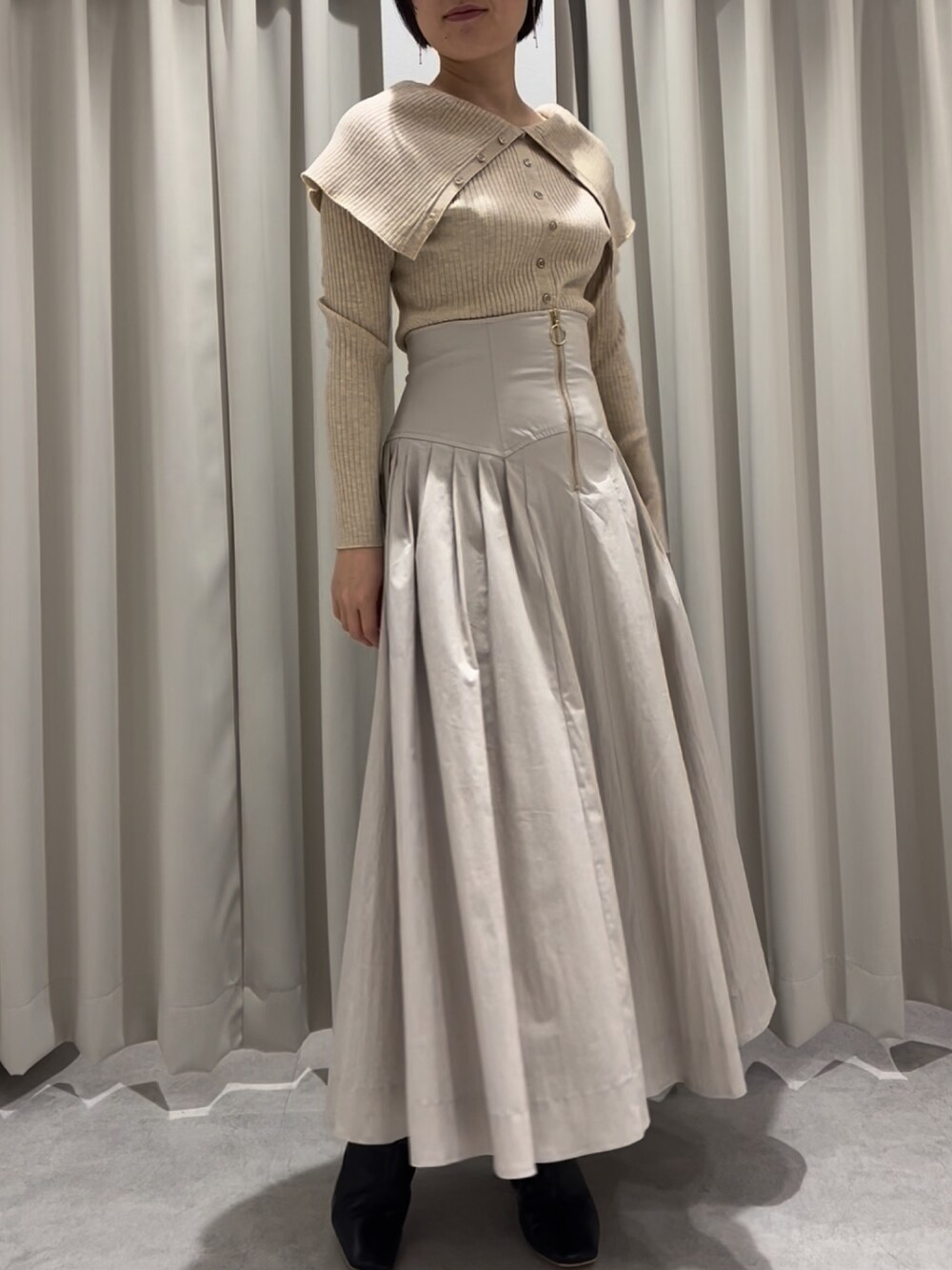 RUNA ONISHI(LAGUNAMOON)のスカート「フロントZIPコルセットデザインフレアスカート」を使ったコーディネート