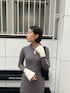 周りと差のつく着映えワンピースコーデ 【ワンピース】 一枚で着映えする春ワンピース♡ タイトシルエットですが、腰回りはややゆとりを持って作られているので太ももが目立つ骨格ウェーブ体型の私でもあまり気にならずに着ることが出来ました♡同じ体型悩みの方にも是非挑戦して頂きたい一枚。 下着のラインは拾いやすいので、お下着はシームレスのものを選ぶと安心です♡ 163センチでMサイズ着用し、くるぶしにかかる丈感スニーカーを合わせてもスッキリ着こなせました◎150〜155センチくらいの小柄さんだとSサイズでもやや長く感じるかもしれないので、ヒールのある靴で合わせやソールの厚いスニーカーとのコーディネートがおすすめ。 【シューズ】 足元が一気に垢抜ける拘りが詰まった一足♡ 肌にフィットする、柔らかい素材なので履き心地も抜群。足の甲広めの私の足にも窮屈さ無く綺麗にフィットしてくれました◎ 安定感ある履き心地なのでヒール苦手な方にもおすすめです♡ 【バッグ】 シンプルなデザインなのでどんなコーデにも相性抜群。 表面はマットな質感の素材を使用しており、細かい部分までこだわりの詰まったアイテム♡ しっかりマチがあるので長財布もすっぽり入りますよ✨