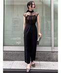 女性らしさのあるパンツスタイル 【ドレス】 LAGUNAMOONで好評のパンツドレス♡ ドットチュール×裏地のレースの組み合わせが今までに無く、上品な華やかさが引き立つパンツスタイルです、、、♡ 肩までしっかり覆ってくれる袖丈なので腕の露出感も控えめ。 羽織なく一枚で着て頂けますよ〜!! 163センチでサンプルSサイズ着用。太めのパンツなので骨格ウェーブ体型で気になるヒップや太ももをスッキリと見せてくれます✨ くるぶしにしっかりかかる丈感なので、150〜155センチの方であれば5センチ以上のヒールを合わせるか、裾のお直しをオススメします。 結婚式はもちろん、レストランでのディナーやセレモニーなどドレスアップしたい日におすすめ。 【パンプス】 足を綺麗に見せてくれるスクエアタイプ。 甲が広いのでパンプスは足が痛くなることが多いのですが、こちらはMサイズで窮屈感なく履き心地も◎ アンクルストラップが付いているので、ヒールのパカパカ感が気になる方に是非お勧めしたいシューズです✨ 【バッグ】 シンプルなデザインなのでどんなドレスとも相性抜群! 帛紗付きな点も嬉しいポイント。