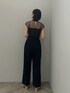 女性らしさのあるパンツスタイル 【ドレス】 LAGUNAMOONで好評のパンツドレス♡ ドットチュール×裏地のレースの組み合わせが今までに無く、上品な華やかさが引き立つパンツスタイルです、、、♡ 肩までしっかり覆ってくれる袖丈なので腕の露出感も控えめ。 羽織なく一枚で着て頂けますよ〜!! 163センチでサンプルSサイズ着用。太めのパンツなので骨格ウェーブ体型で気になるヒップや太ももをスッキリと見せてくれます✨ くるぶしにしっかりかかる丈感なので、150〜155センチの方であれば5センチ以上のヒールを合わせるか、裾のお直しをオススメします。 結婚式はもちろん、レストランでのディナーやセレモニーなどドレスアップしたい日におすすめ。 【パンプス】 足を綺麗に見せてくれるスクエアタイプ。 甲が広いのでパンプスは足が痛くなることが多いのですが、こちらはMサイズで窮屈感なく履き心地も◎ アンクルストラップが付いているので、ヒールのパカパカ感が気になる方に是非お勧めしたいシューズです✨ 【バッグ】 シンプルなデザインなのでどんなドレスとも相性抜群! 帛紗付きな点も嬉しいポイント。