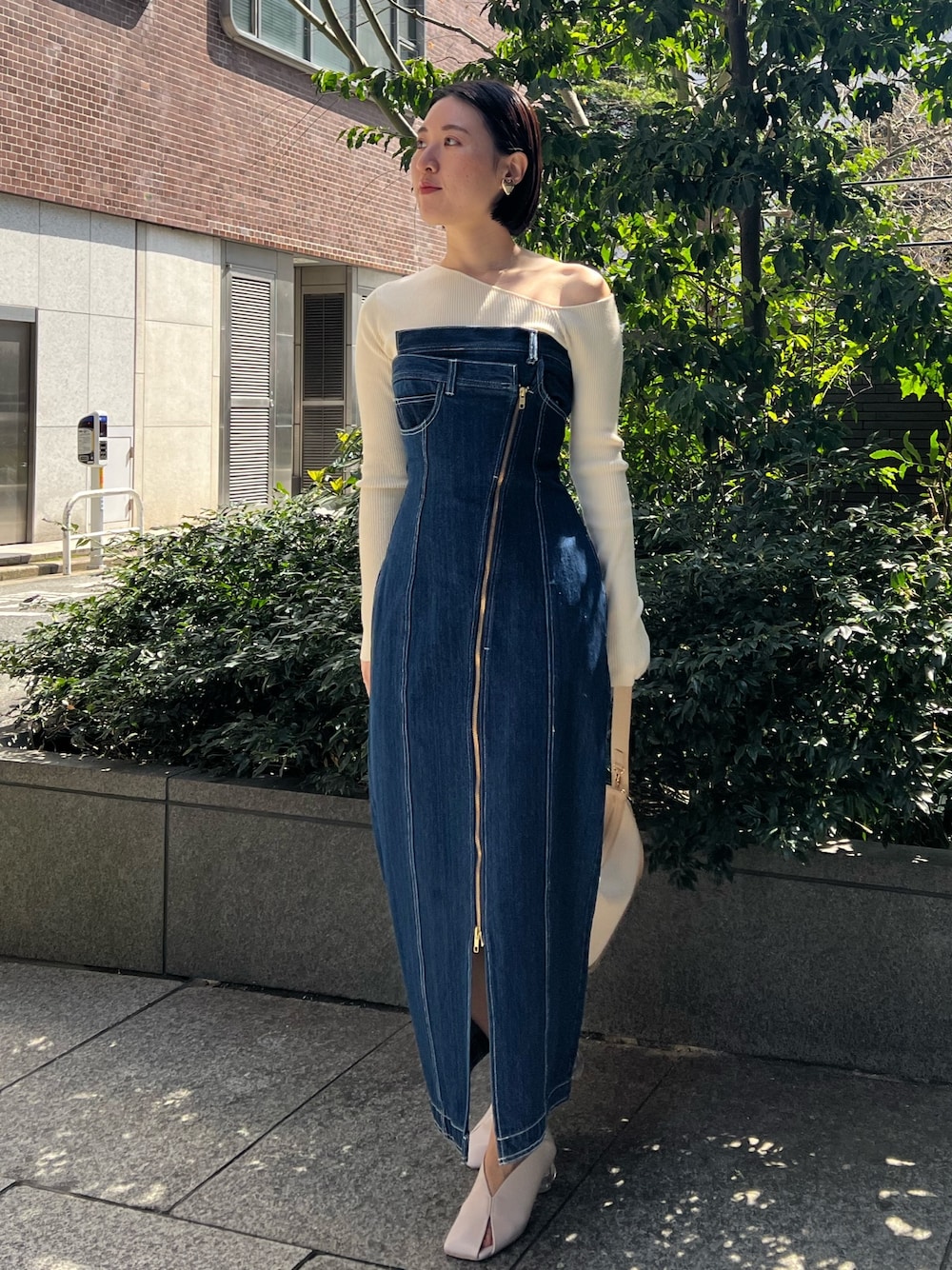 トレンドMIXなカジュアルコーデ 【トップス】 コーデのポイントになるアシンメトリーデザイン♡ 首元は深く空きすぎないデザインなので、大胆な肌見せもあまり抵抗無く着ることができますよ💫 編み糸のしっかりしたニットなので、首元がヨレたりズルッと落ちてくることはありませんでした♡ シンプルなデニムやパンツを合わせたハンサムなスタイリングから、ふわっと広がるフレアースカートと合わせたりとコーデに取り入れやすく万能。一枚でトレンド感のあるコーデになりますよ♡ 【ワンピース】 フロントデザインにこだわり詰まったベアワンピース。 163センチでMサイズ着用。あまり胸元にボリュームのある方ではありませんが、ずれ落ちる事はなく背中部分は伸びのいいギャザーゴムなのでニットをインナーに着ても苦しさは感じませんでした◎ 窮屈に感じる場合は、インナーをシアートップスに変えたりワンピース単体の着用+カーディガンを羽織るスタイリングだと着心地の良さもUPします◎ 【シューズ】 足元が一気に垢抜ける拘りが詰まった一足♡ 肌にフィットする、柔らかい素材なので履き心地も抜群。足の甲広めの私の足にも窮屈さ無く綺麗にフィットしてくれました◎ 安定感ある履き心地なのでヒール苦手な方にもおすすめです♡ 【バッグ】 シンプルなデザインなのでどんなコーデにも相性抜群。 表面はマットな質感の素材を使用しており、細かい部分までこだわりの詰まったアイテム♡ しっかりマチがあるので長財布もすっぽり入りますよ✨