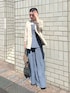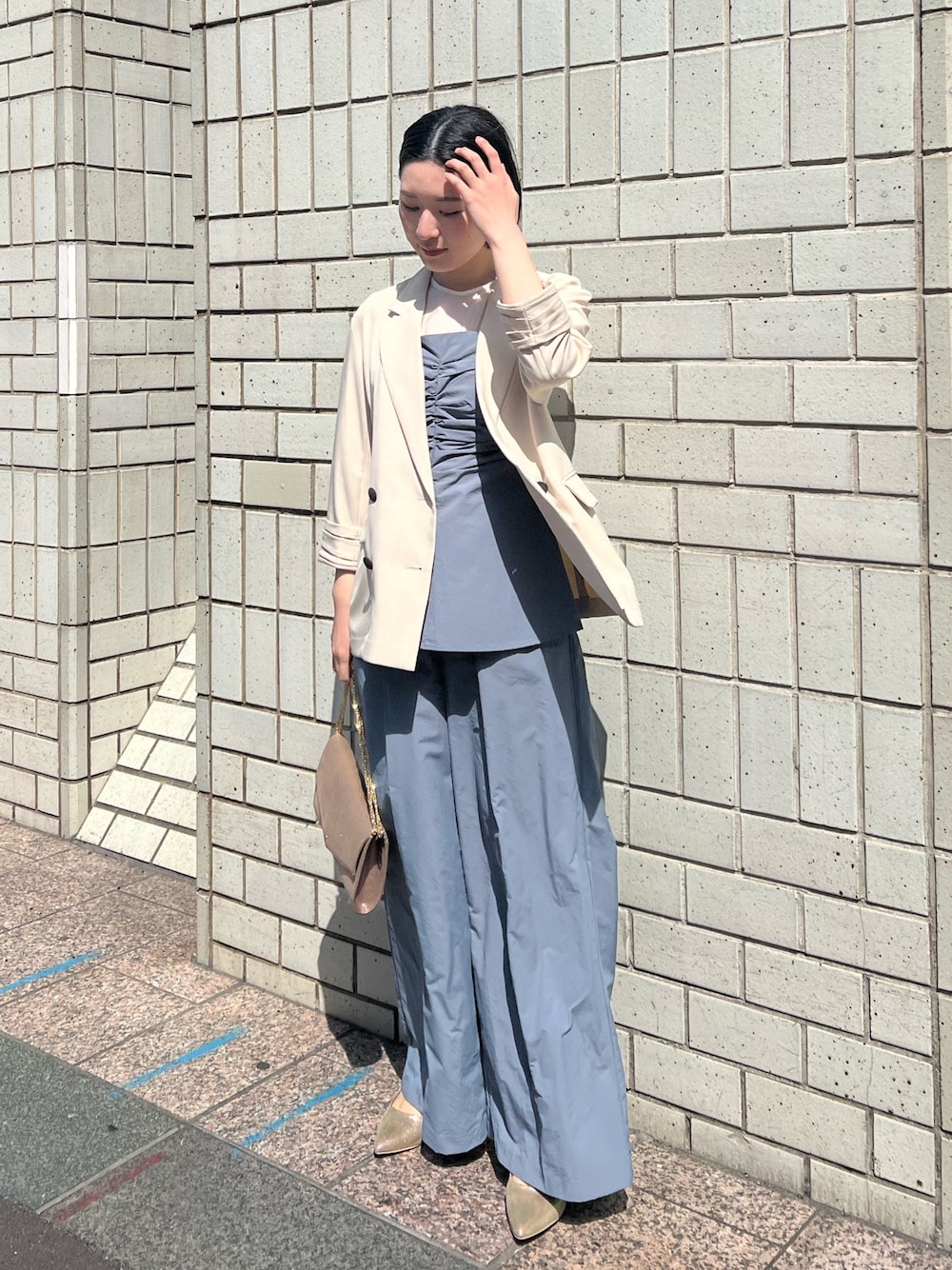 ハンサムなパンツドレスコーデ 【ジャケット】 袖口の折り返しデザインがポイント。 テクニック入らずでこなれ感のあるスッキリしたジャケットスタイリングが完成します♡ ヒップにかかる丈感のジャケットですが、手首が見える袖丈でスッキリと着こなせるので華奢な肩やオーバーサイズが苦手な方にもおすすめ。 【ドレス】 ブルー×ホワイトの爽やかな配色が印象をパッと明るく見せてくれるパンツドレス。 ウエスト切り替えのあるペプラムデザインなので、気になるウエスト周りは綺麗に隠しスタイルアップ効果も◎ 163センチでMサイズ着用。LAGUNAMOONのドレスの中ではややゆったりしたサイズ感。LAGUNAMOONのお洋服をMサイズでジャストフィットもしくは少し緩めに着ている方であればやや余裕ある着心地だと思います◎ 丈感はしっかり長め。7.5センチヒールを合わせても足首がしっかり隠れる丈感だったので、高いヒールが苦手な方は近隣のお直し屋さんでの裾詰めかワンサイズ落としての着用をおすすめします◎ 【シューズ】 足にフィットしパカパカしないのでヒールを履いた時のグラグラ感も少なく今までのストレスを軽減してくれて感動。 ベーシックカラーはもちろん、赤やブルーなどカラー物との相性も◎なのでオケージョンシューズとして一足あると重宝します! 【バッグ】 帛紗付きで携帯もハンカチもすっぽり入る大きめサイズ。チェーンがレースを傷つけないよう、肩にかける部分はラバーになっているので持ちやすいですよ♩