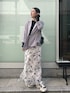 綺麗めカジュアル♡ジャケットコーデ 【ジャケット】 LAGUNAMOONの人気シリーズ♩ 気軽にゆるっと羽織れる春にぴったりのジャケットです◎差し色に取り入れやすい、薄いグレーを混ぜたようなラベンダーカラー。 デニムコーデ、オフィスコーデ、結婚式コーデなど幅広いシーンで活躍すること間違い無し。 裏地ついていない、さらっとした生地なので気温の上がる春先に重宝しますよ〜✨ 肩が落ちたデザインなので、ジャケット特有のカチッと感が控えめ。肩周りの骨格がしっかりしている方や厚みが気になる方にも安心して羽織って頂けます♡ 少しお袖が長めなので、気になる方は2.3回ほど折り曲げロールアップするとスッキリ着こなせますよ◎ 【スカート】 柔らかい配色が春らしいスカート。 甘くなりすぎない、大きな柄なので大人っぽく上品な着こなしが好みの方におすすめ。 腰回りをカバーしてくれるナローシルエットなので、ヒップや太もも張りが気になる方にも安心して着て頂けます♡ 春はリブニットや綺麗めブラウスで合わせ、夏はTシャツにスニーカーなどカジュアルな着こなしも楽しめそうです♡ 163センチでMサイズ着用し、くるぶしに綺麗にかかる丈感。150〜155センチの小柄さんはSサイズでヒールを合わせると丈感気にせず着て頂けますよ♡3センチほどソールの厚さのあるスニーカーもおすすめ。 【スニーカー】 履いて軽さに驚いたLAGUNAMOONオリジナルスニーカー♡ 厚めのソールでスタイルUP効果もあり、360度どこから見ても綺麗に見えるように。とこだわり抜かれたフォルムに感動。 足の甲広め/24.0〜24.5でMサイズを履いており、窮屈感も無くスッと着脱出来る為足の甲広めで悩んでる方にもおすすめです✨ 【バッグ】 イタリアの革職人が手作業で作り上げたBAGブランドからセレクト。 小ぶりでコンパクトなサイズ感なのでコーデに取り入れやすく、ショルダーの取り外しが可能◎ 洗練されたデザインは持つだけで気分が上がります♡