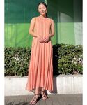 夏らしいカラーワンピース 【ワンピース】 数年前の復刻デザイン✨ 上品なシアー感とさりげなくキラっとするラメ糸の生地が凄く可愛いです♡ 血色感良く見えるオレンジカラーはパッと明るく見えるので夏のリゾート地にもぴったり。 デザインはもちろん、着心地の軽さはLAGUNAMOONイチ。真夏のジメジメとした気温の日でも楽にお洒落を叶えてくれます! 163センチでMサイズ着用し足首が隠れる長め丈♡ 少し長めなので高身長さんでもしっかりロング丈で着用して頂けます◎ 【スニーカー】 履いて軽さに驚いたLAGUNAMOONオリジナルスニーカー♡ 厚めのソールでスタイルUP効果もあり、360度どこから見ても綺麗に見えるように。とこだわり抜かれたフォルムに感動。 足の甲広め/24.0〜24.5でMサイズを履いており、窮屈感も無くスッと着脱出来る為足の甲広めで悩んでる方にもおすすめです✨ 【バッグ】 シンプルながら、持つだけでお洒落に見えるフォルム♡ 財布、ハンカチとしっかり入るサイズ感なのでちょっとしたお出かけにぴったり。