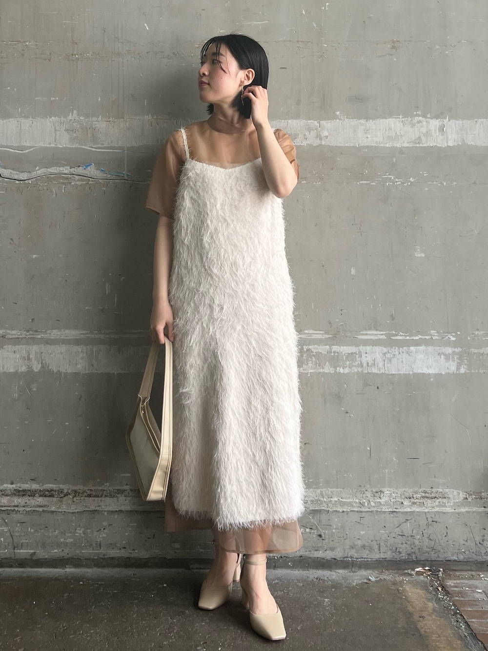 トレンド感あるお呼ばれコーデ 【ワンピース】 周りと差のつく、今っぽいトレンド感あるオケージョンワンピース。 シアー素材のワンピースにジャガード素材のキャミソールタイプワンピースを重ね着したデザインが新鮮♡ ハイネックデザインですが、シアー素材なので抜け感があることで首詰まりが苦手な私でも抵抗感なく着れました♡ 同じ悩みを持つ方にもおすすめです✨ 163センチ/Mサイズ着用し足首上3センチほどの丈感。150〜155センチの方はSサイズがおすすめです♩ 【パンプス】 足を綺麗に見せてくれるスクエアタイプ。 甲が広いのでパンプスは足が痛くなることが多いのですが、こちらはMサイズで窮屈感なく履き心地も◎ アンクルストラップが付いているので、ヒールのパカパカ感が気になる方に是非お勧めしたいシューズです✨ 【バッグ】 シンプルなデザインなのでどんなドレスとも相性抜群! 帛紗付きな点も嬉しいポイント