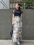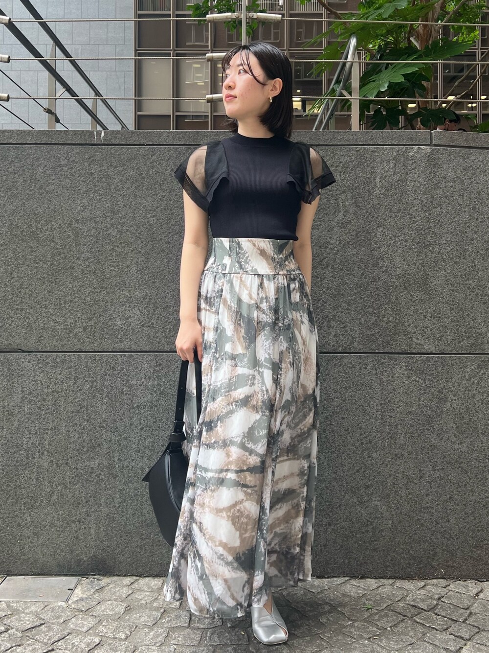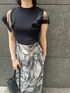 大人フェミニンなら blackコーデ 【トップス】 お袖のシアー感がポイント。 程よく二の腕をカバーしてくれるデザインなので腕を出すのが得意で無い方にも着て頂きやすいですよ♡ 細かい縦リブの入ったニット生地なので、スッキリとした着こなしが好みの方へおすすめ。 【スカート】 ぼかしの入ったMIXカラーがお洒落見えするスカート♩ しっかりウエストマークをしてくれるデザインなのでメリハリのあるシルエット。 さらっとした軽い生地のスカートなので重たさなく着心地も快適ですよ♡ 一枚で存在感があるのでトップスは無地のシンプルなアイテムがおすすめ。 163センチでMサイズ着用しており、くるぶしに綺麗にかかる長めの丈感です。
