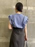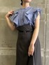 きちんと感のあるブラウスコーデ 【ブラウス】 濃いブルーのストライプ柄が知的な印象♡ くたっと感のある柔らかい生地のブラウスなので、ラブリーになりすぎずに着こなせるフリルデザイン♡ 二の腕をほっそり見せてくれる絶妙な袖丈✨ シワになりずらいのできちんとハンガーにかけて保管して頂くとアイロン入らず。お手入れの楽さもおすすめポイントです♡ 【スカート】 秋冬好評だったスカートが夏も履きやすい素材になって再登場です♡ 締め色になるベルトとセットなので、キュッとウエストマークが出来てスタイルアップ効果抜群でした♡ ややゆとりのあるサイズ感なので、ヒップ・太ももあたりもピタッとしすぎない楽な着心地もおすすめポイント。 フロント部分にはさりげなくスリットも入っているのでロング丈でも足捌き良く歩きやすかったです◎ 163センチでMサイズ着用し足首が見える丈感なので長すぎずにスッキリと着こなせますよ♡