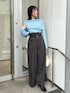 【トップス】 肩が落ちすぎないデザインなので肌見せが得意じゃない方にも手に取り やすいデザインのオフショルニットです✨ ブラトップに変えず、下着の肩紐も少し外側にずらして着用しています! 裾部分がリブになっているので、ボトムスにINもアウトスタイリングもバランスよく見せてくれますよ、 やや荒目のニットなので、肌が敏感な方は首元が広く開いたTシャツを合わせると◎ 【パンツ】 とにかく美シルエットが叶うワイドパンツ。 位置の高いハイウエストデザイン+バイカラーの細ベルトSETなので、視覚的に細見え効果をUPさせてくれますよ! 個人的には、骨格ウェーブ体型の悩みであるヒップ位置の低さを麗にカバーしてくれる所に感動。 163センチでMサイズ着用しており、くるぶしに丁度かかる丈です。いつもより短めにサイズ設定されているので、個人差ありますが店頭では152~155センチの小柄さんにもSサイズをお直し要らずで着用頂いています◎ 【ショートブーツ】 細めのスクエアトゥデザインのおかげで足元までスッキリ見えますよ! ヒールのカタチも横幅がしっかりある為安定感のある履き心地。 実際に店頭で約7.5時間履いていても疲れ知らずですよ! 24.0でM(約24.5)サイズ着用。 靴下を履いていてもややゆとりがあるので真冬に分厚い靴下を履いても窮屈感なく着用できそうです。