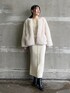 【ブルゾン】 さらさらふわっとした触り心地と軽さに感動。もこもことしたシルエットですが、首元がすっきりと空いているので着膨れ感の出ない印象。 とにかく軽く、短時間着ているだけでもぽかぽかと暖かさを感じたのでこの冬コート代わりの一着として重宝しそうです。 ワンピースだけでなく、デニムなどカジュアルスタイリングにもおすすめ! 【ワンピース】 チュールを重ねると着映えするデザインなのでお呼ばれや二次会にも着て頂きたい一着。 チュールカーディガンを外しての着用も可能なので幅広いシーンで活躍しそうです♡ 柔らかいニットなのでやや下着等ラインは響きやすそうなのでペチコート着用がおすすめ!