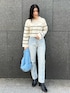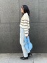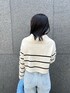 【トップス】 カジュアルながらも、女らしく見えるボーダー柄トップス。 顔周りには柄が無いのでスッキリとした印象。 普段ボーダーを選ばない私も着づらさが無くコーデの幅が広がりそうです♩ ボトムスにインせず使えるショート丈なので、ボトムス選ばずコーデに取り入れやすいですよ✨ 【パンツ】 ヒップ・太ももまわりを綺麗にカバーして足をスッと綺麗に見せてくれるテーパードシルエット。 柔らかいデニムなので肌馴染み良く動きやすいです♡ Mサイズ着用し、しっかり足首にかかる丈感。 インしても窮屈にならず履くことができます!