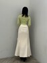 【トップス】 店頭でも2色買い多発!シンプルかつ上品に見えるデザインはオンオフともに着回し力抜群。 空き具合も程よく、顔まわりをスッキリ見せてくれますよ◎チャコールグレーは福岡店1番人気のカラー。ダークな色味ですがブラックほど重たくならないので普段暗色を選ばない方にも着て頂きやすいです! 【スカート】 ヒップやふともものシルエットを拾わず、麗なマーメイドシルエットが叶います✨ ウエストのサイドが柔らかいリブになっているのでトップスをインせず楽な着心地が魅力◎ 163センチでMサイズ着用しており、くるぶしに麗にかかる丈感。 ivory はやや透け感があるので、ペチコート着用がおすすめです!