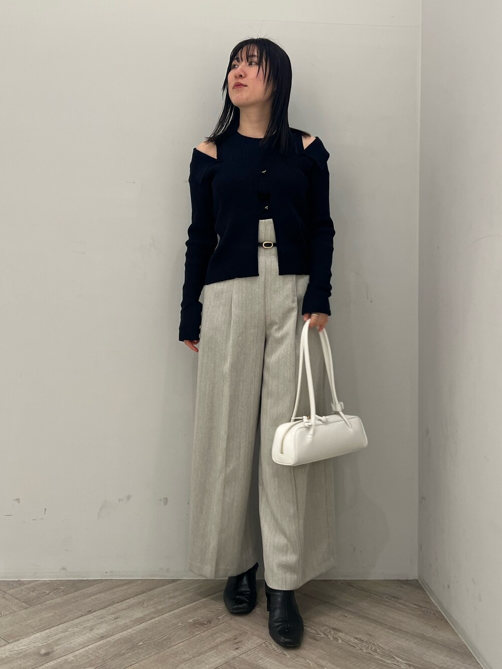【トップス】 春らしいカラー展開のアンサンブルニットな カーディガンとノースリーブのトップスは単体でも使えるので幅広く着回し可能。 通気性のいいさらっとしたニット生地なので着心地の良さもおすすめです。 カーディガンの襟部分を落とさずに着用すれば、肌見せ控えめに着ることもできるので肌寒い3月下旬まではインナーを着て頂くこともできます♥ デニムパンツやハイウエストデザインのボトムスとのコーデもおすすめです。 【パンツ】 とにかく美シルエットが叶うワイドパンツ。 位置の高いハイウエストデザイン+バイカラーの細ベルト SETなので、視覚的に細見え効果をUPさせてくれますよ! 個人的には、骨格ウェーブ体型の悩みであるヒップ位置の低さを麗にカバーしてくれる所に感動。 163センチでMサイズ着用しており、足首がしっかりかかる長めの丈感。 6センチヒールのブーツ着用で底に付かず着ることが出来ました• パンツ丈の長さが欲しい高身長さんにおすすめ。