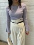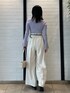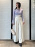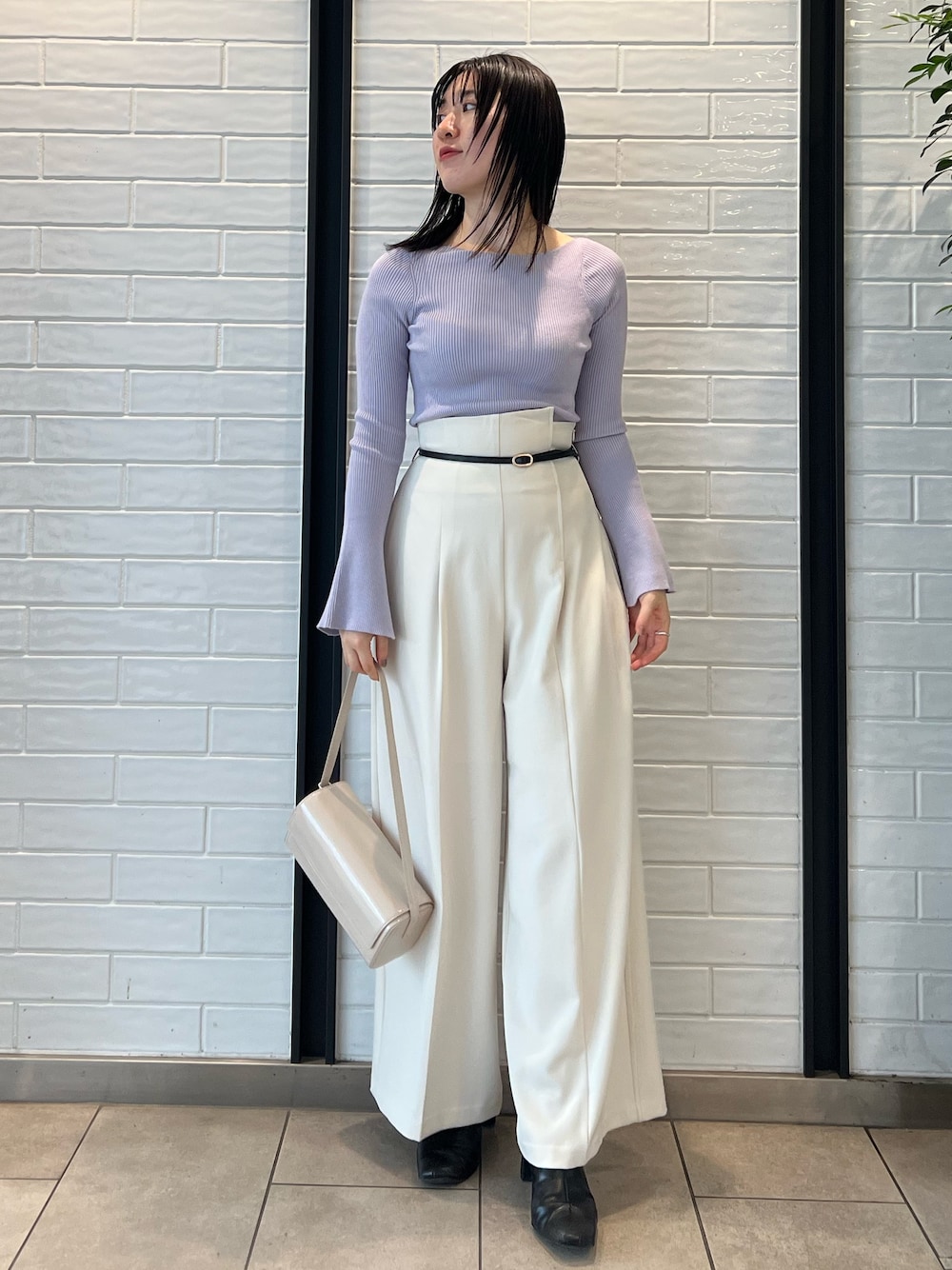 【トップス】 店頭でも2色買い多発!シンプルかつ上品に見えるデザインはオンオフともに着回し力抜群。 空き具合も程よく、顔まわりをスッキリ見せてくれますよ◎うっすらと青みがかったラベンダーカラーなので、品よく着こなして頂けます✨ 【パンツ】 とにかく美シルエットが叶うワイドパンツ。 位置の高いハイウエストデザイン+バイカラーの細ベルトSETなので、視覚的に細見え効果をUPさせてくれますよ・ 個人的には、骨格ウェーブ体型の悩みであるヒップ位置の低さを麗にカバーしてくれる所に感動。 163センチでMサイズ着用しており、くるぶしに丁度かかる丈です。いつもより短めにサイズ設定されているので、個人差ありますが店頭では152~155センチの小柄さんにもSサイズをお直し要らずで着用頂いています◎