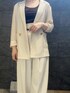 【ジャケット】 軽いメッシュ素材なので暑い夏の羽織にもぴったり! 背中にはウエストを絞れるベルトが付いているので、どんな体型の方も着せられてる感出さず着こなして頂けます✨ オンオフ問わずに着やすいデザインです! 【トップス】 夏も着れるベロア素材のトップス。 裏地がさらっとしたメッシュになっているので通気性良くベタつきません◯ 前後2way着用ができるので気分に合わせて違った雰囲気で着こなせます! 【パンツ】 人気のデザインが再入荷しました✨ 163センチでMサイズ着用。 切り替え位置の高いハイウエストデザインなのスタイルアップ効果抜群!