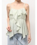 【トップス】 夏らしい爽やかなグリーン! 立体感のあるラッフルフリルのデザインがポイントになり一枚で着映えします✨ ボトムスにはすっきりとしたシルエットのパンツやスカートがおすすめ。 【パンツ】 大好評のパンツが再入荷しました! 163センチでMサイズ着用。 ハイウエストデザインですが、パンツシルエットが綺麗なのでアウトスタイリングもバランス良く着こなせます。