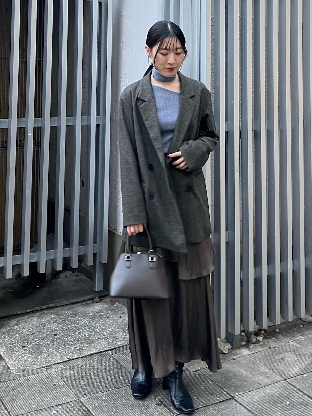 【ジャケット】 着せられてる感のないオーバーサイズ! 163センチで着用し、ヒップが隠れる丈感 ウール混なのでコート前までの羽織として活躍します✨ 【トップス】 ボウタイの取り外し可能! デコルテも華奢に見える、主役級トップスです♡ 【スカート】 163センチでMサイズ着用。 とろみある柔らかい生地なので動くたびにふわっとした揺れ感が可愛い、、、✨ スニーカーコーデとも相性抜群です!