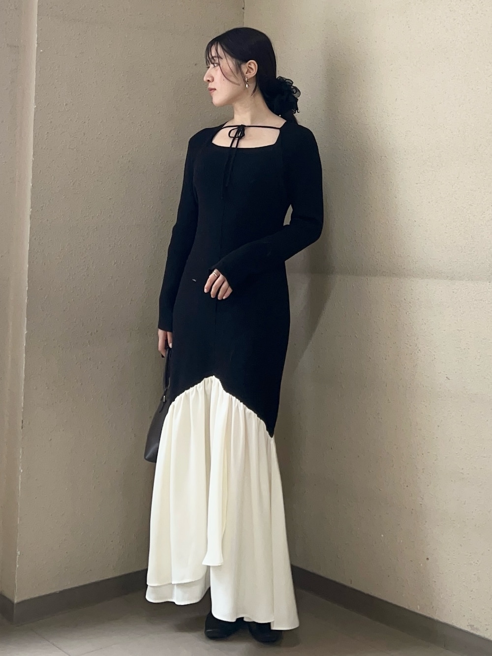 【ワンピース】 163センチでMサイズ着用。 レディ感たっぷりなデザインなので、ディナーや忘年会におすすめ!✨