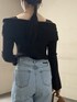 【トップス】 デコルテデザインがポイントのオフショルニット。 肩の部分がシアーになっているので控えめな肌見せデザインで上品な印象✨ 【デニム】 163センチでMサイズ着用。 ハイウエストデザインなのでスタイルアップ効果抜群です! 長めの丈感なので5センチ程のヒールを合わせています♩
