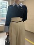 【トップス】 大大人気のPOLOBCSコラボに新色ネイビー登場♡ ivoryのワイドパンツで大人なコーデもおすすめ。 【パンツ】 163センチでSサイズ着用。 ハイウエストなのでTOPSをINしたシルエットだとスタイルアップ効果抜群。 透け感も気にならず、オンオフ着回ししやすいデザインです。