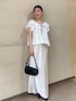 【トップス】 FILAコラボアイテム。 オフショルの調整ができるので、肌見せを控えたい方は肩を隠した着こなしもおすすめ。 程よい丈感なので、インせずに着てもバランスが綺麗〜✨ 【スカート】 163センチでMサイズ着用。 裏地付きなのであまり透け感が気になりませんでした。 (念のため、透けづらい色味の下着やペチコート着用がおすすめ。) ウエストゴムなので着心地も良く、夏場にもぴったりのスカートです⚪︎