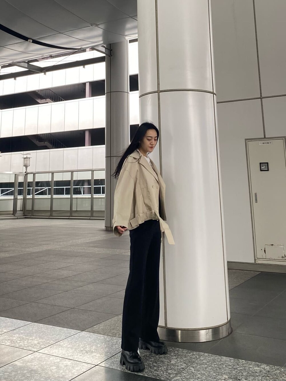 現在発売中のショートトレンチコートご紹介! トレンドの襟が大きいデザインなのでお顔周りがスッキリ見えます!ドロップショルダーでトレーナーやゆったりしたインナーも着込みやすく、肩幅を華奢に見せてくれます! スタイル効果抜群のフレアパンツはポンチ素材なので伸縮性があり楽に履いて頂けます! 股下が長めでハイウエストになるので丈の短いトップスにも合わせやすいのでおすすめです!