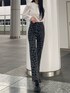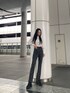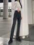 今年のトレンド詰め込みコーデ! チェッカー柄が珍しいフレアジーンズ!細身に見えるデザインで脚長効果抜群です!色味はモノトーンなので色味のトップや私のようにモノトーンで揃えてもかわいくお使い頂けます! トップス襟が大きいデザインなのでお顔周りがスッキリ見えます!ドロップショルダーでトレーナーやゆったりしたインナーも着込みやすく、肩幅を華奢に見せてくれます!