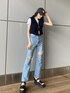 【夏のカジュアルコーデ】【ベスト】1枚でもベストでも使える2WAY仕様です!夏でもサラッと着れるニット生地なので涼しくて着やすいです!【デニム】身長175センチでXSサイズを着用しています!くるぶしより少し上ぐらいの丈感です!クラッシュの位置も両膝少し上目なので膝を曲げた時も安心です◎ 【サンダル】クッションが効いており柔らかく長時間履いても楽ちんな一足!26センチの私がLサイズ着用できました◎