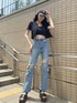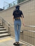 【美脚にみえるカジュアルコーデ】【トップス】セットでも単品でも着用できて、様々な着回しができるアイテムです!中のキャミソールは元々丈が短めのデザインなのでハイウエストのボトムを合わせるのがオススメ◎(露出感なく着れました!)【デニム】身長175センチでXSサイズを着用しています!くるぶしより少し上ぐらいの丈感です!クラッシュの位置も両膝少し上目なので膝を曲げた時も安心です◎ 【サンダル】クッションが効いており柔らかく長時間履いても楽ちんな一足!26センチの私がLサイズ着用できました◎