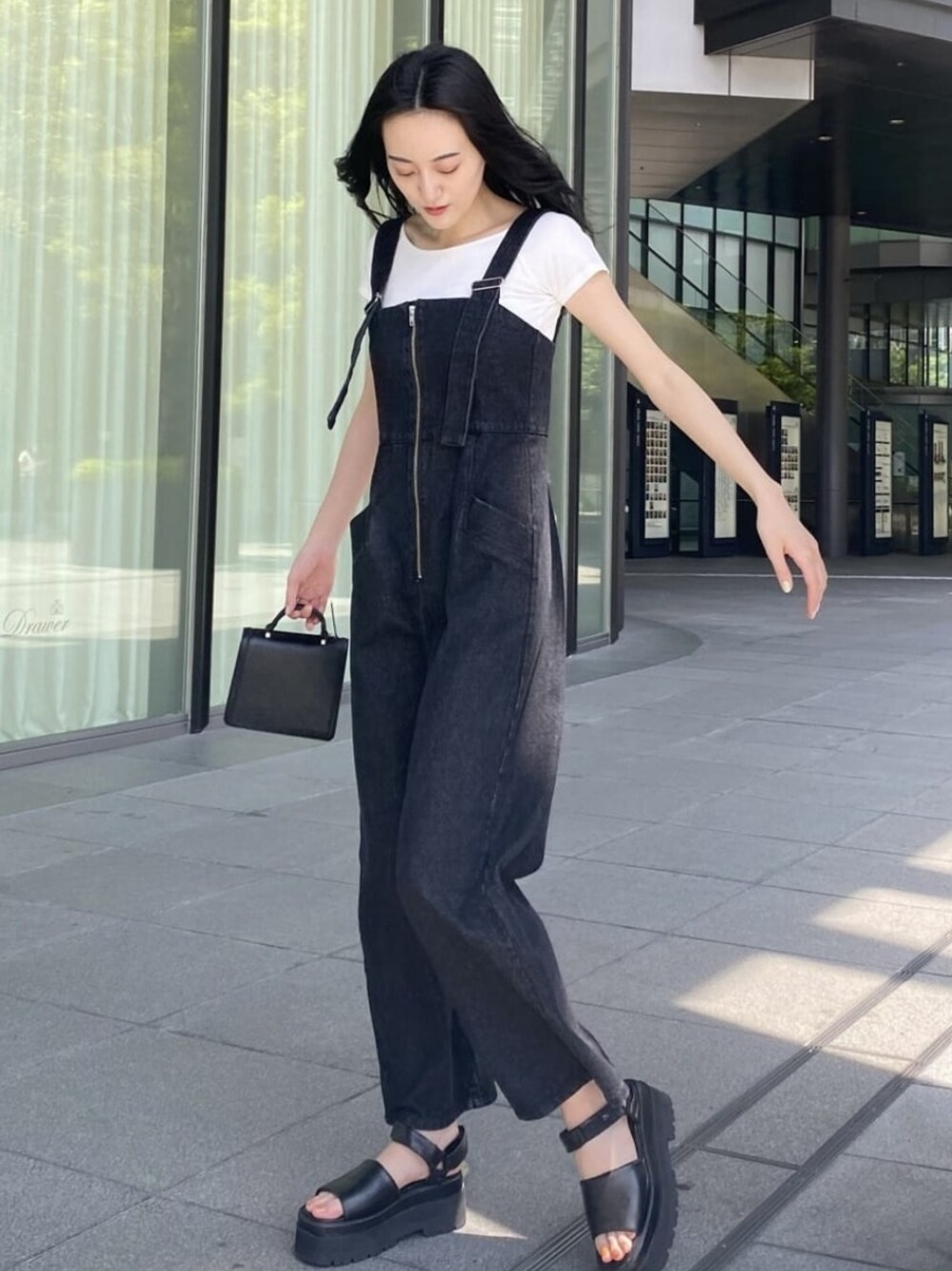 中村樹李亜(EMODA)のつなぎ/オールインワン「ボディカバーサロペット」を使ったコーディネート