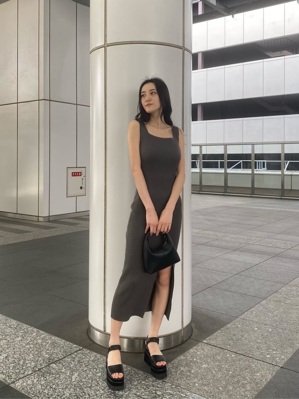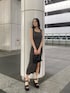 中村樹李亜(EMODA)のワンピース「リブスリットマキシニットワンピース」を使ったコーディネート