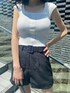 【モノトーン大人カジュアルコーデ】【トップス】ショルダー部分が太めになっているので下着のストラップも気にせず着て頂けます!丈はおへそにかかるぐらいなので短すぎず長すぎずボトムにインしてもスッキリ着れる丈感です◎【パンツ】股上が長めなので脚長効果抜群のハイウエスト!175センチでも着用できる丈間になっています。薄手の素材なのでこれからの暑い季節にもおすすめの一枚。Tシャツに合わせるなど着回しも◎【サンダル】足首のストラップはマジックテープで調節可能でしっかり固定できます!ヒールの高さは10.5cmありますがフラットなソールなので安定感もあり歩きやすかったです!