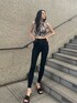 【秋先取り大人モードコーデ】【トップス】伸縮性のあるしっかりした生地感で、着心地抜群です!175cmの私で丈感は、おへそから握り拳一個分くらいになりました!【デニム】175cm、XSサイズ着でくるぶし見える丈感です!伸縮性があるので履き心地◎なのはもちろん、戻る力が強いのでボディラインを引き締めてくれるので足のラインも綺麗に見え脚も細見えします◎イメージは着圧タイツを履いているような感覚です!【サンダル】26センチ、Lサイズ着用で少しかかとが出るくらいです!クッションが効いているので履き心地が良くて、アッパー部分はニット生地なので靴擦れしにくくなっています!どんなコーデにも合わせやすいので夏一足持ってると万能です!【財布】チェーン取り外し可能で、中は仕切りがあるので分けて収納できます!
