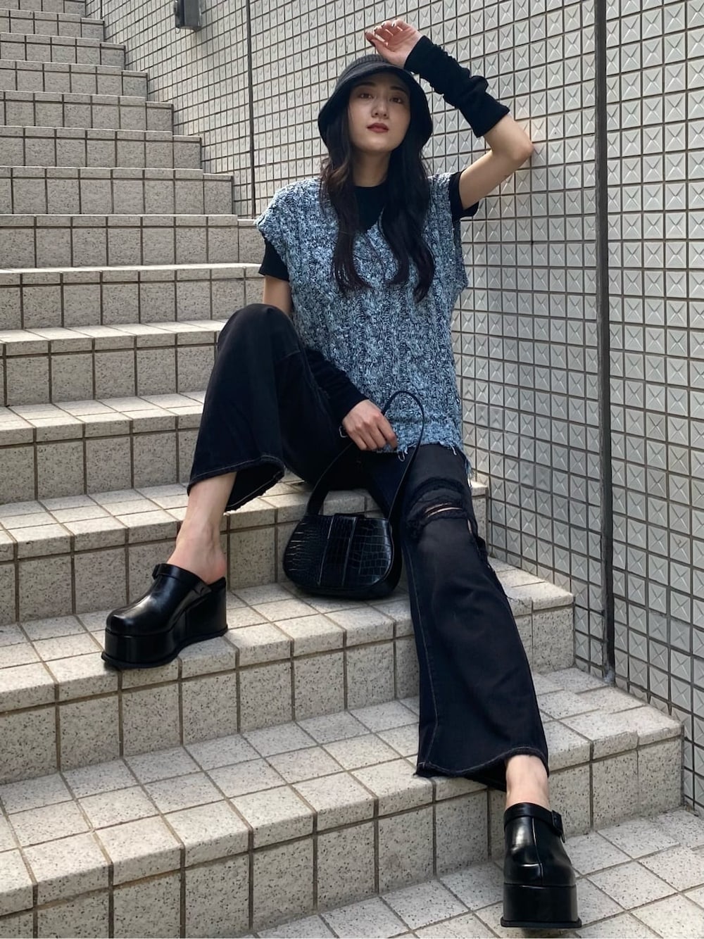 中村樹李亜(EMODA)のハット「ニットフレアハット」を使ったコーディネート