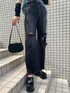 【秋のカジュアルコーデ】【ベスト】175cmでもオーバーサイズで、丈はお尻半分隠れるくらいあります!肩隠れるくらいの幅があるので、華奢に見せてくれます!秋はブラウスや長袖をレイヤードして使えるので長く着用できます!【ボトムス】クラッシュのデザインが目を引くおしゃれデニム!コーデを一気に華やかにしてくれます!ワイドシルエットから見える膝は余裕感が出て足のラインを細見えさせてくれます◎175cm、Sサイズ着用でくるぶしぎりぎり見える丈感です!おへそまで隠れるハイウエストなのでショート丈のトップスの相性も◎です!【トップス】丈はおへそが隠れる丈感で、腕のボタンを取るとアームウォーマーになるので一気にトレンド感ある映えトップスになります!単色はテロっとしたTシャツのような生地感で、柄はシースルー素材の生地感なので今の時期でも涼しく着用できます!インナーにキャミソールを着ると◎です!【靴】毎年人気のサボ!着用のブラウンはファー付きで一気に秋コーデに!26センチ、Lサイズ着用で少しかかと出るぐらいで履けました!ヒールは9cmなので高すぎず低すぎず履けます!【鞄】紐が肩にかけやすい丈感で、どんなスタイルにも合わせやすいです!