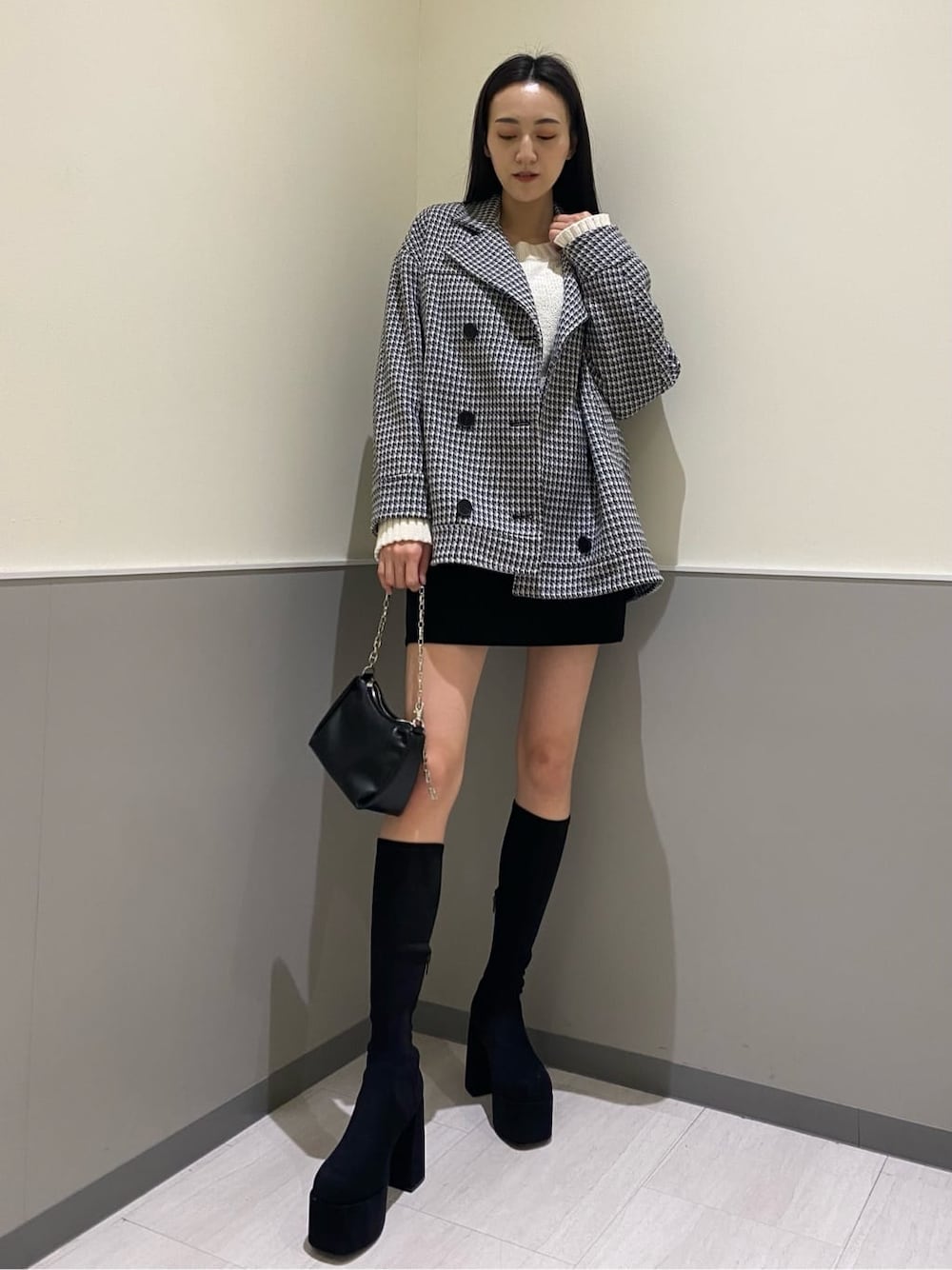 【冬のデートコーデ】【ジャケット】お尻がすっぽり隠れる丈感なので、重く見えすぎないシルエットになります!袖周りが広いのでニットやトレーナーも着膨れせずに着れます!【ニット】丈感はおへそより上のショート丈です!生地がモール生地なので今の時期は1枚で着用できますし、中にインナーを着込んで冬でも長く着用できます!【スカート】175cm、Mサイズ着用でかなりショート丈になります!中にインナーショーツ付きなので安心です!シンプルなデザインなのでどのコーデにも合わせやすく万能です!【靴】程よい厚みと伸縮性のあるフェイクスエードを使用しているので、 脚を入れた時に程よくフィットしてくれるので美脚に魅せてくれます!【鞄】持ち手のチェーンで一気にこなれ感がでて、コーデのポイントになります!携帯、折りたたみ財布、鍵が入るくらいのコンパクトなサイズ感です!