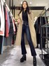 【冬の大人カジュアルコーデ】【ニット】今季トレンドのハーフジップのデザイン!おへそがぎり隠れる丈感で、厚みのある生地感がカジュアルすぎずモードな印象で着て頂けます!【デニム】フレアデニムはストレッチが効いている為とても履き心地が良く、一般的なフレアデニムに比べると細身のシルエットでより美脚効果◎です!股上も長めのハイウエストでおへそ隠れるくらいあるのでショート丈との相性も◎です!【ブーツ】ヒールが11.5cmありますが、傾斜が緩やかなので安定して着用頂けます!サイドゴアなので程よく伸縮性があるので脱ぎ着もしやすく歩きやすいです!細身のシルエットなので足を長く見せてくれます!【ロングコート】腕周りがゆったりとしたデザインなので、インナーを選ばずに厚手のニットやダボっとするスウェットも中に着込んで頂けます!ウールが16%はいっているので特に腕、肩周りが軽めで暖かい素材になります!