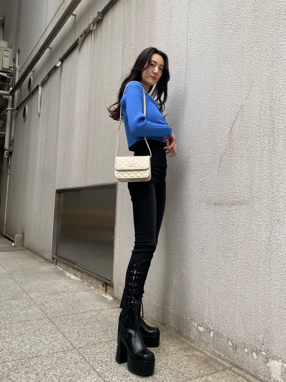 【大人カジュアルな休日コーデ】【ニット】重ね着してる風のタンクトップ型インナーが付いているので、インすると上半身がより引き締まって見えます!肩にボタンでとれる紐があり、オフショルダー風に着ることもできるので、着回し力抜群のアイテムです!【デニム】おへそより上の股上の長いハイウエストなので、腰の位置が高く見えて足が長く見えます!裾のレースアップがお好きな開きに調節が可能なので、足首の肌見せも楽しんでいただけます!身長175cm、Sサイズ着用でくるぶしかかるぐらいです!【シューズ】足首周りスキニーインできるほどのゆとりがあって、ヒールは高めですがヒール部分が太く、傾斜が緩やかなのでかなり安定して履いて頂けます!