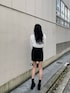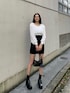 【春のモノトーンコーデ】【トップス】少し透け感がある素材で、サラッとしているので春夏使えるアイテムです!袖がパフになっているので可愛さが出て、手足が長く見えます!ウエスト部分がゴムでしまって見えるのでスタイルアップ効果◎です!【スカート】中にインナーショートパンツ付きで、動きやすいです!おへそ上までくるハイウエストなので足が長く見えます!【ブーツ】Lサイズはインヒールが9cmあるので、厚底感なく足が盛れます!軽い素材なので疲れにくく1日中履いていただけます!26cmですが、紐を緩めるとぎりぎり履けるぐらいでした!【鞄】今季トレンドのハーフムーンデザインで、ミラー付きなのでかなり利便性が◎です!まちが広めなので折りたたみ財布もはいりました!