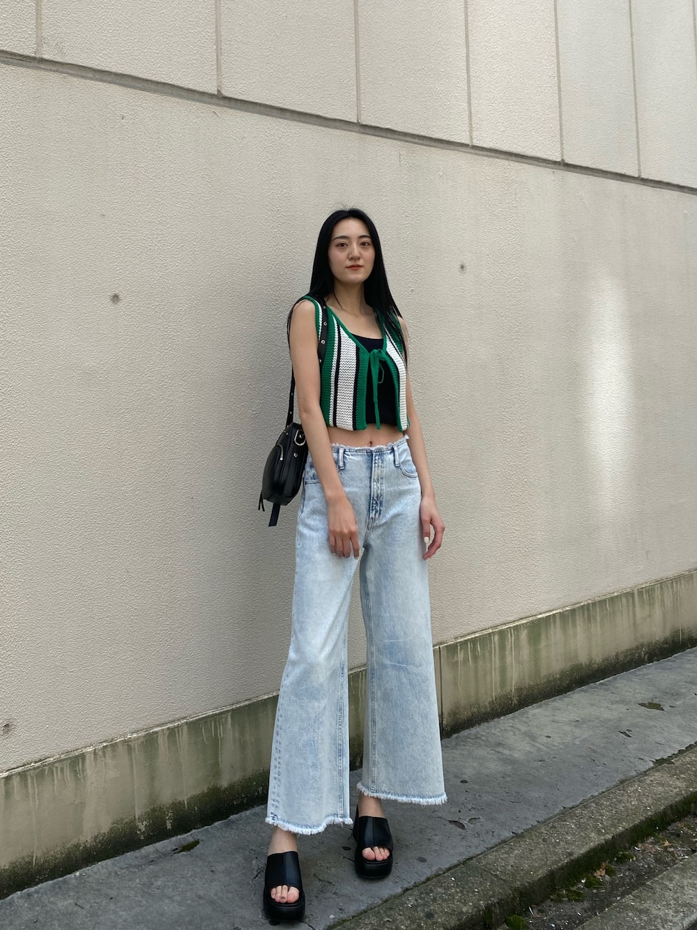 【夏の大人カジュアルコーデ】【タンクトップ】サイドにスリットが入るデザイン!前はおへそ上の丈感です!タイトなシルエットなのでインナーにおすすめです!【ベスト】タンクトップ型のベストはトップス風でも、今の時期はロングTシャツなどから重ねて着ても◎です!タンクトップと同じような丈感です!【デニム】腰履きのロータイプのワイドパンツ!骨盤周りが広めなので張りを気にせず着用頂けます!Mサイズでくるぶしちょっと上ぐらいでかなり長めです!【バッグ】ショルダー型の縦バック!まちもあるので携帯、折り畳み財布、ポーチが入るくらいのサイズ感です!【シューズ】Lサイズでヒールが約8.5cmですが傾斜が緩やかなので歩きやすく長時間履いても疲れにくいです!普段26cmで足幅が広い私でも少しかかとはみ出すぐらいで履けました!