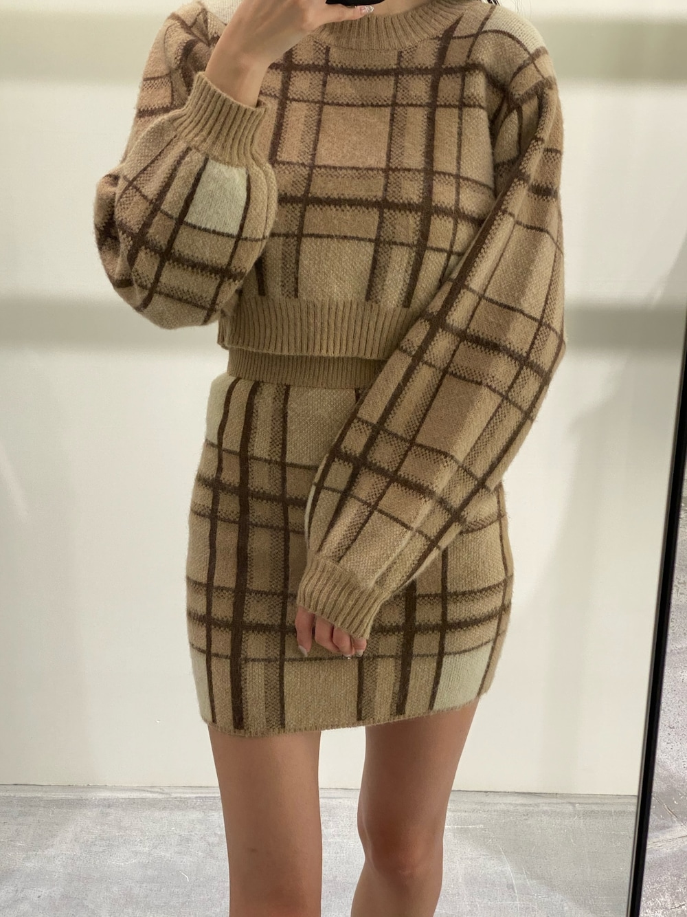 【ニット】 毎年この時期になると人気のチェックニット!同じデザインよスカートと着ればセットアップ風に着用可能です!パフスリーブのデザインで女性らしい丸みのあるデザインです!大きめチェック柄なので、可愛すぎずにも着用頂けます! 【スカート】 中にインナーパンツが入っているので安心して着用頂けます!フリーサイズなので高身長の方は画像のようにタイトなシルエットになり、長さもかなり短めになります!ニーハイブーツなどと合わせても○です! 【ブーツ】つま先がスクエアのデザインなので綺麗めな印象に!ヒールが太めで傾斜が緩やかなので安定して履いて頂けます!そして軽いので長時間履いても疲れにくいです!