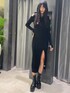 中村樹李亜(EMODA)のワンピース「カットアウトフードニットワンピース」を使ったコーディネート