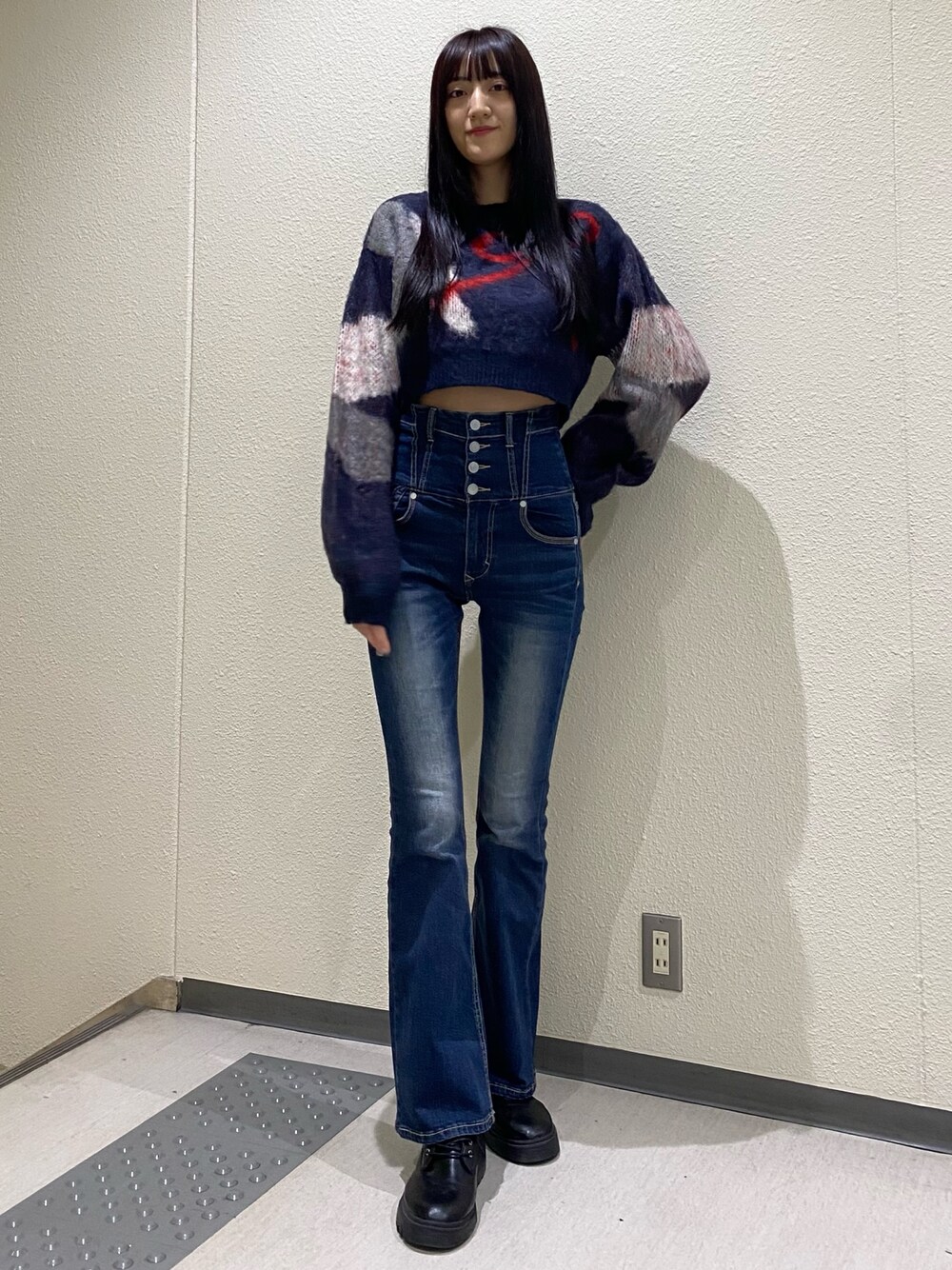 中村樹李亜(EMODA)のデニムパンツ「バックレースアップハイウエストパギンス」を使ったコーディネート
