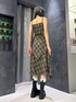 【ワンピース】 今年トレンドのチェック柄のレイヤード風ワンピース! 深めのスリットが入っているので、ロングに見えるミニワンピースの着こなしをして頂けます!身長175センチで、中のミニワンピは短めの丈なので高身長の方はインナーパンツ入れて頂いたり、デニム合わせでもかわいく着て頂けます! 【ブーツ】 毎年人気の細見えする厚底ショートブーツ! 脛ぐらいまでの高さがあるのでミニ丈のボトムスとも相性◎です!ヒールの高さは9センチありますが、傾斜が緩やかで安定感があるのでヒール感のない履き心地になっています!足のサイズ26センチ、Lサイズ着用でギリギリ履けるぐらいでした! 【帽子】 グレーの色味はヴィンテージ風なので、カジュアルなお洋服と合わせやすいアイテムです! 【ソックス】 シンプルなルーズソックス!ブーツから少しポイント見せで履いて頂いたり、スニーカーやローファー合わせをする時の合わせにとてもおすすめです!がっつり伸ばして履くと身長175センチで膝かかるギリギリの丈感になりました!