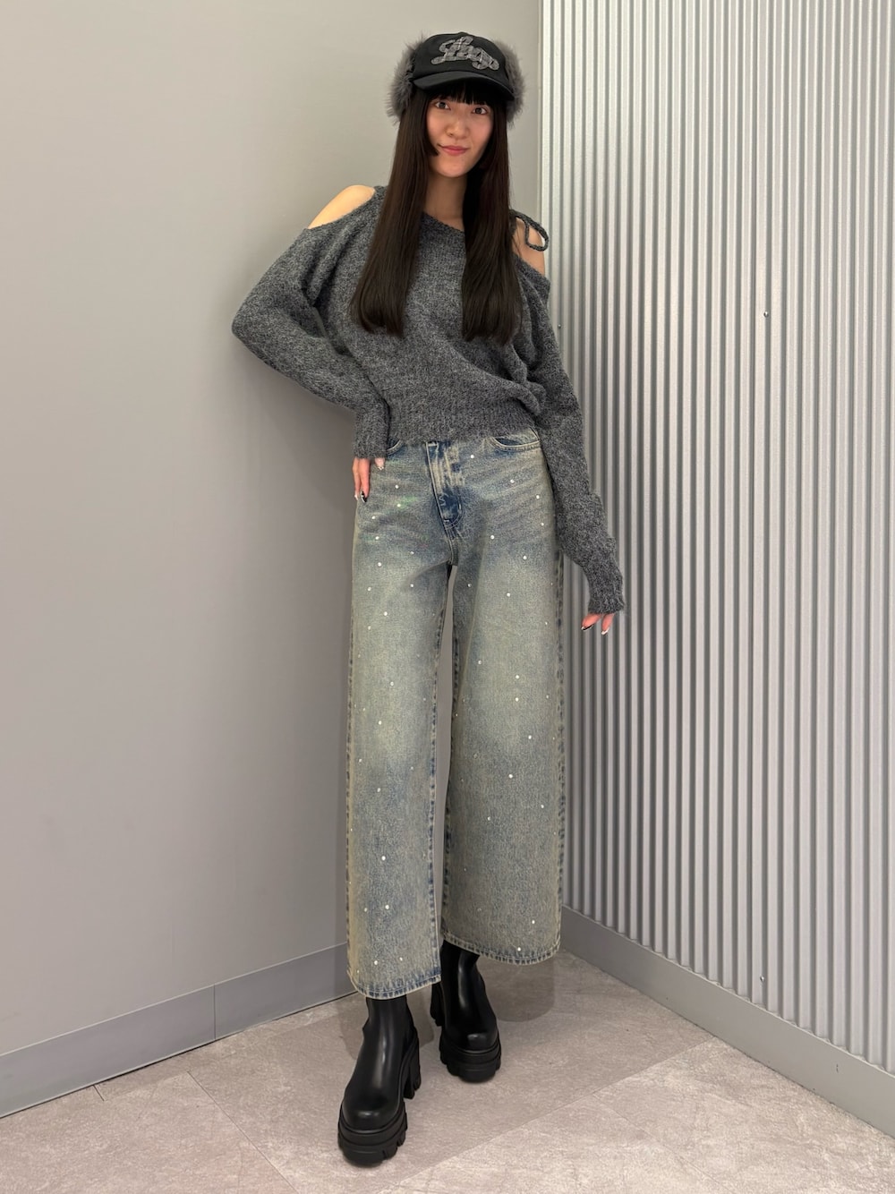 中村樹李亜(EMODA)のデニムパンツ「クロスベルトルーズジーンズ」を使ったコーディネート