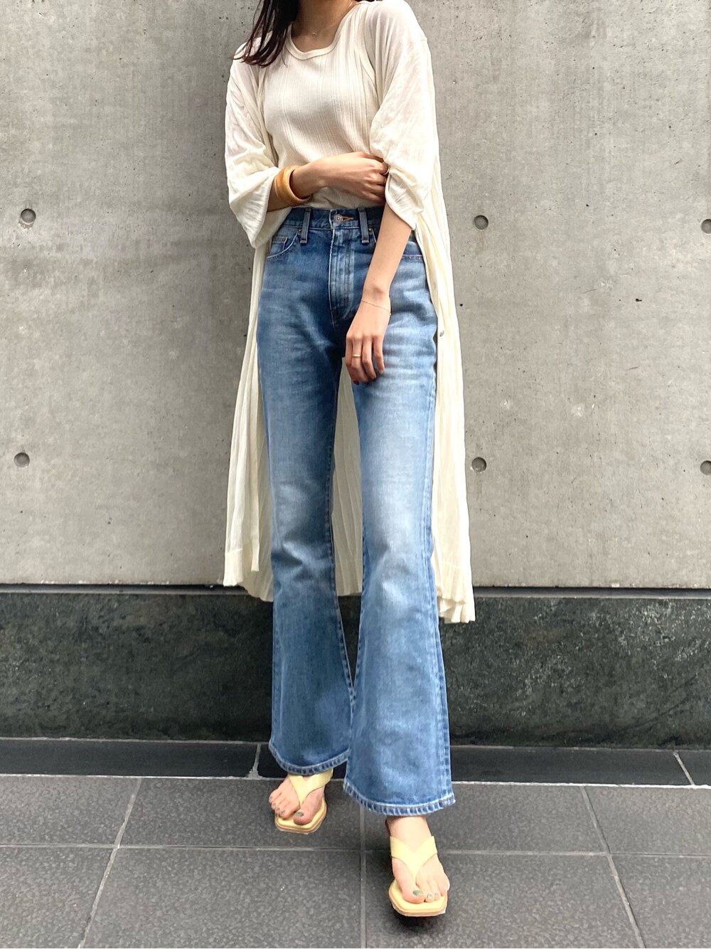 程よい薄さのニットカーディガンは、着た時の肌触りの良さと軽さにびっくり!!程よい丈間で、下にストンと落ちてくれるので、スッキリ見せてくれ色々なボトムスと合わせていただけます!!タンクトップとデニムと合わせてシンプルに!小物や、カラーのサンダルでシンプルコーデに足し算でおしゃれ見えに!!デニムは程よいフレアで足長細見せ効果抜群!少し丈が長めなので、足元はスッキリと!