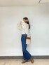 レース素材のシャツをデニムとシンプルに合わせた春コーデ♪【Tops】レースデザインのシャツは、コットン素材で柔らかくナチュラルな印象に⭐︎ゆったりとしたサイズ感なので、アウトで着ていただくとしっかりヒップを隠してくれる長さです!中にカラータンクトップなどを入れて、合わせていただいても◎【Denim】フレアシルエットのデニムは、ハイウエストで長さもしっかりあるので脚長効果抜群です!高身長の方でなかなか長さの合うデニムがないと言う方に特におすすめです!!生地も柔らかくデニム独特の締め付け感がないため、ストレスなく履いていただけます♡ 【Bag】リネン混素材が可愛い、ショルダーバッグはフェイクレザーも施されており綺麗めでもカジュアルなコーデでも馴染んでくれます⭐︎内容量も大きく、小さめのお財布や小物類を入れていただけるサイズ感です♪