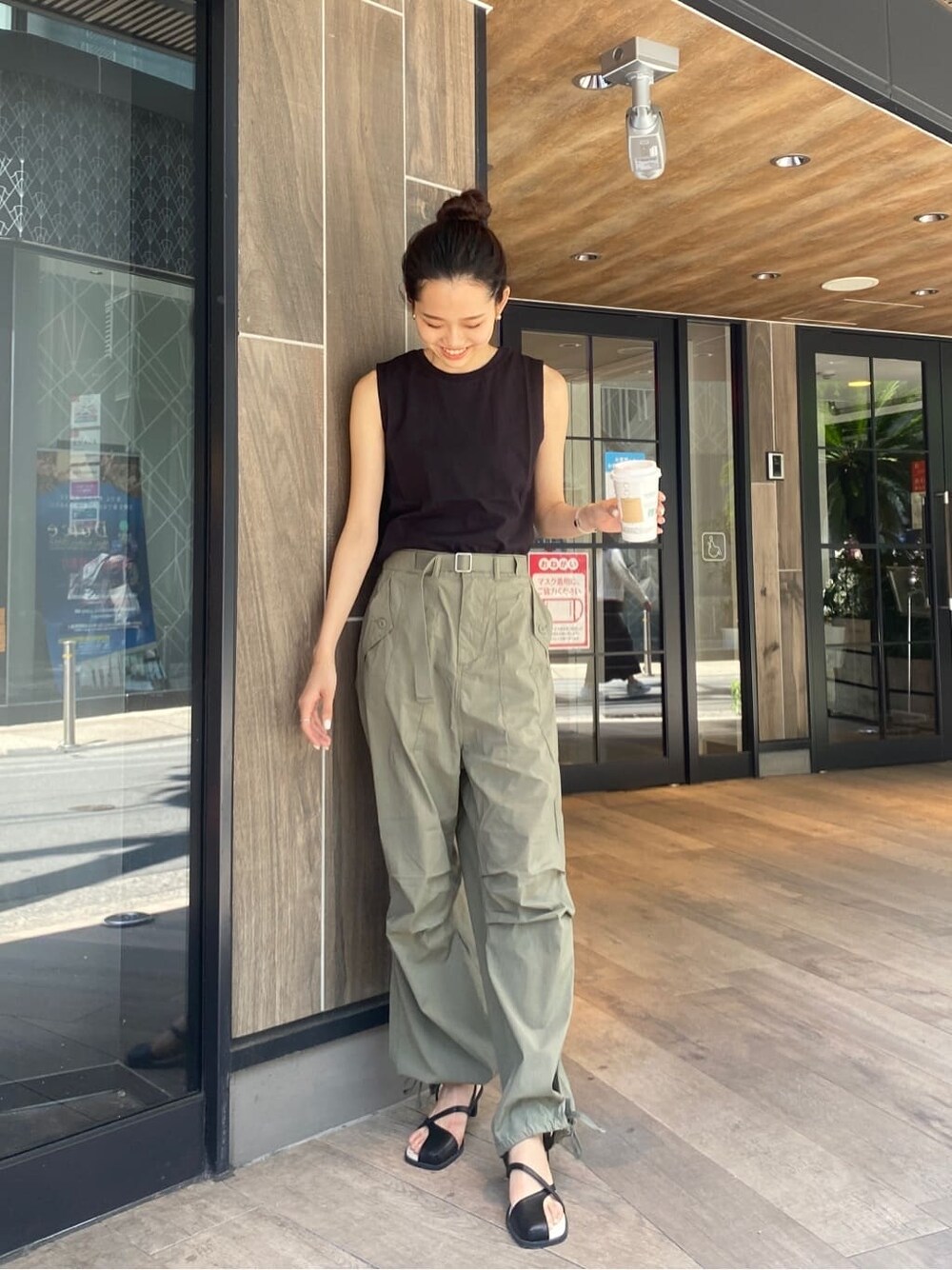 ミリタリーパンツを使ったシンプルカジュアルコーディネート♪【Tops】Basicシリーズのボックスタンクトップは生地が柔らかく、着心地がとても良い1枚です!一枚でも、インナー使いもしていただけるので一枚あると活躍間違いなしです!!【Bottoms】ミリタリーパンツは165cm,フリーサイズ着用で、高身長の方でもしっかり長さを出していただける一枚です!!ウエストのベルト、サイドのボタンで調節していただけます○【shoes】足元で女性らしさを...♡細目のストラップですが、足首で固定されるため履いていただきやすいサンダルです!!ヒールも高すぎず、クッション性があるので疲れにくいところもおすすめです⭐︎